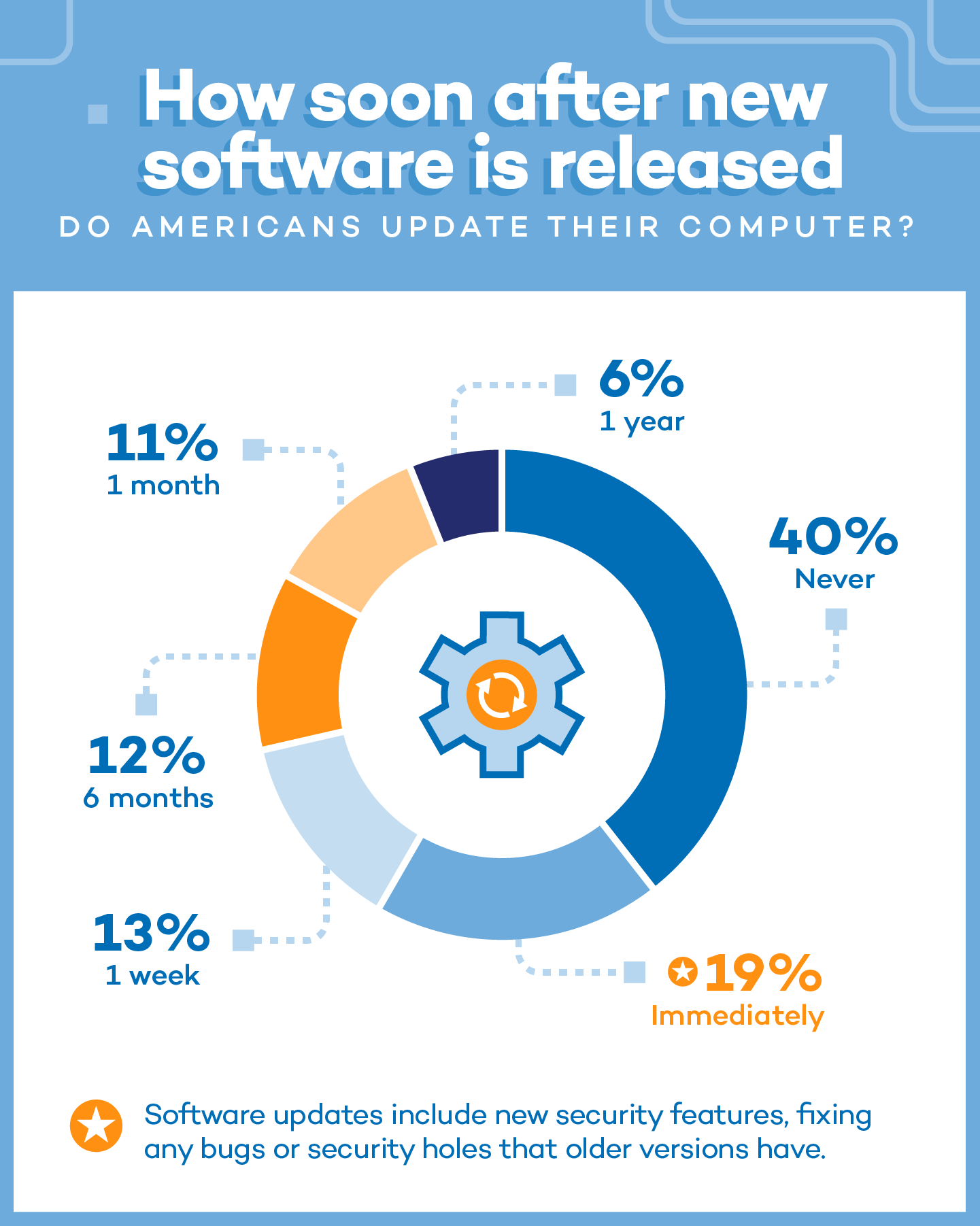 - 2 in 5 Americans update their computer immediately after new software is released