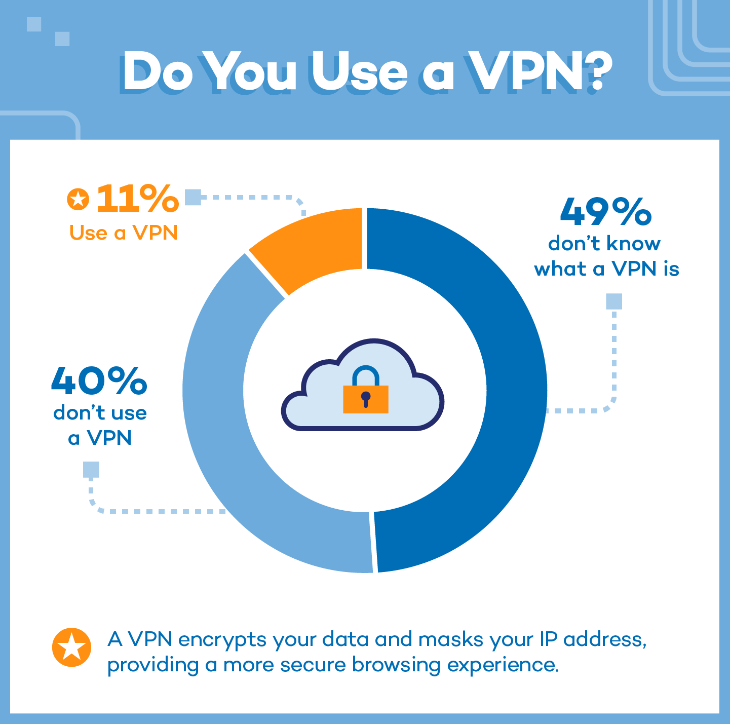 - 49% of Americans don’t know what a VPN is