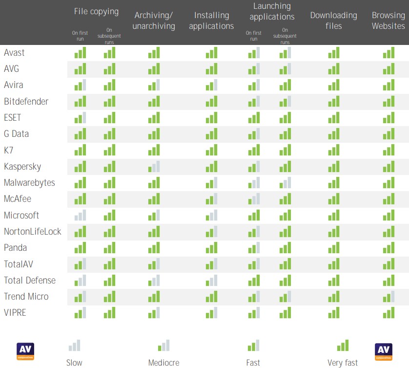 As usual, the Austrian laboratory has analysed the 18 most relevant cybersecurity solutions on the market in its performance test. This test measures the impact of different cyber security software on the PC. In this case, to be as close as possible to a common user case, a low-end PC running Windows 10 with an i3 processor, 4GB of RAM and a solid-state hard drive was used.