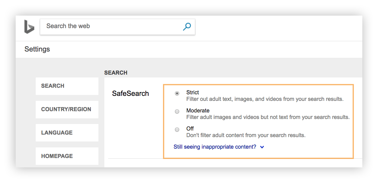• Manage search engines to limit what a child can search online