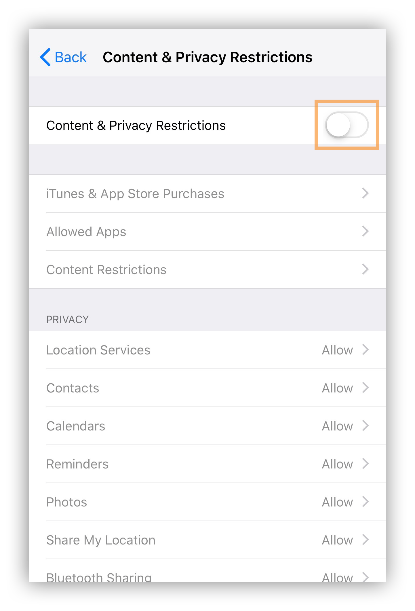 2. Tap Content & Privacy Restrictions. Enter your passcode if applicable, then turn on Content & Privacy.