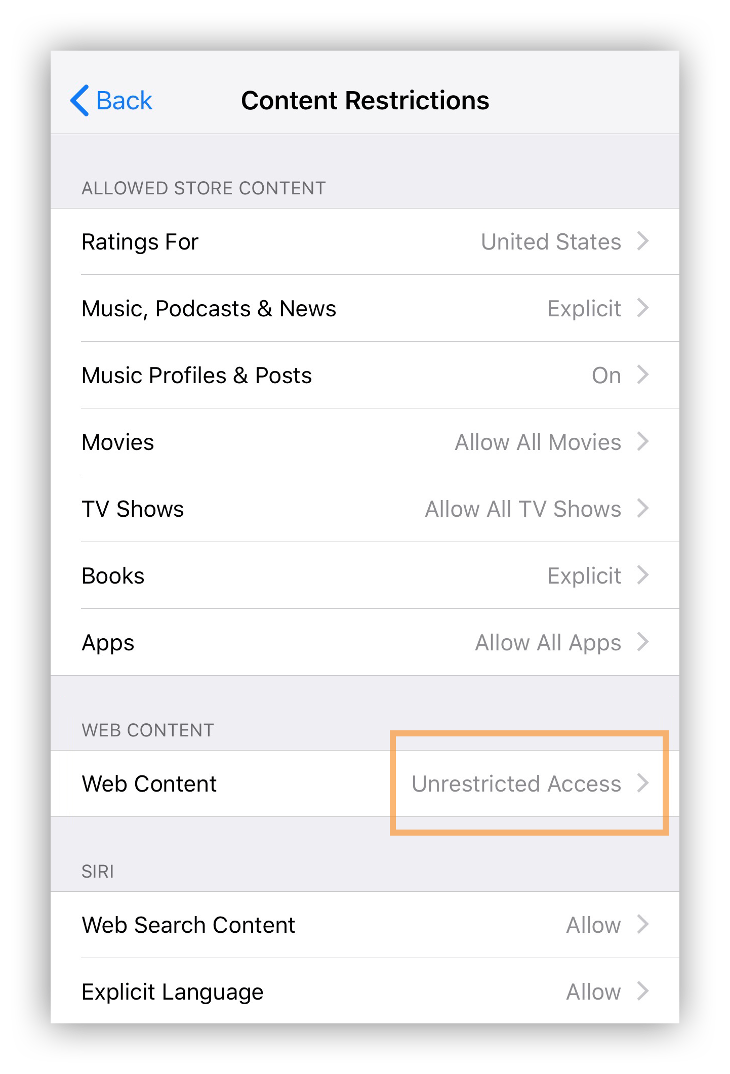 2. Tap Content & Privacy Restrictions, then choose Content Restrictions.