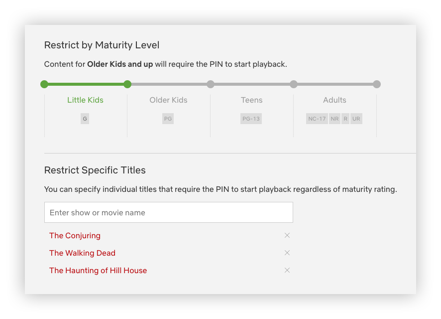 Note: Below the Parental controls master switch there is a summary of which restriction is set for each type of content.