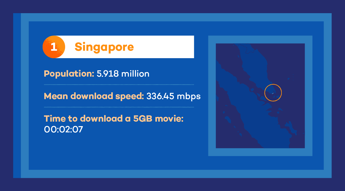 According to Speedtest.net, as of 2025, Singapore holds the title for the fastest fixed broadband internet in the world, boasting a median download speed of 368.50 Mbps.