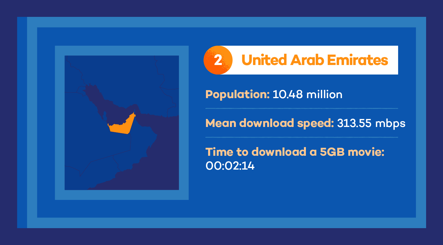 The UAE stands second when it comes to fastest Wi-Fi speed, with an average internet speed of 318.63 Mbps. With this kind of speed, people in the UAE are enjoying smoother streaming, quicker downloads and a better overall online experience.
