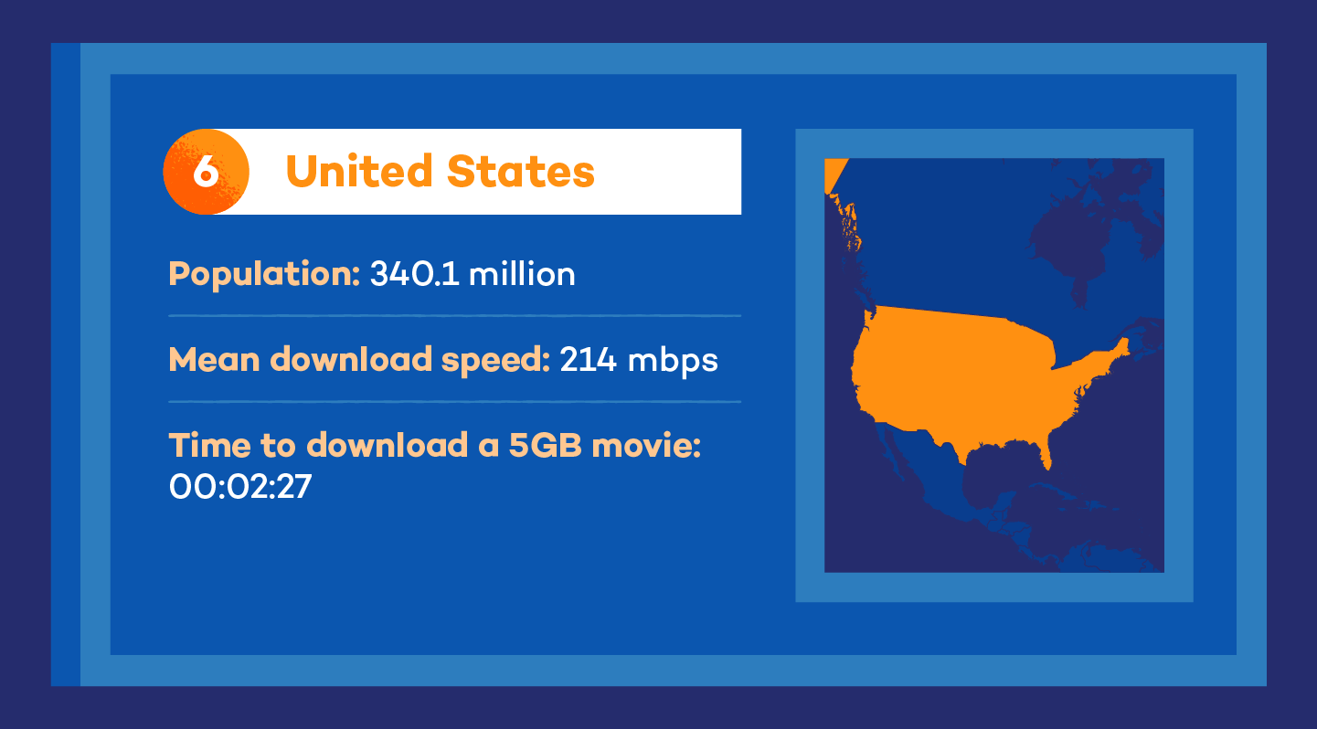 Despite being a technological powerhouse, the United States ranks only sixth in terms of average internet speed at 291.18 Mbps. This relatively lower position can be due to a combination of factors, including the country’s vast geographical expanse, diverse infrastructure landscapes and varying levels of competition among internet service providers in different regions.